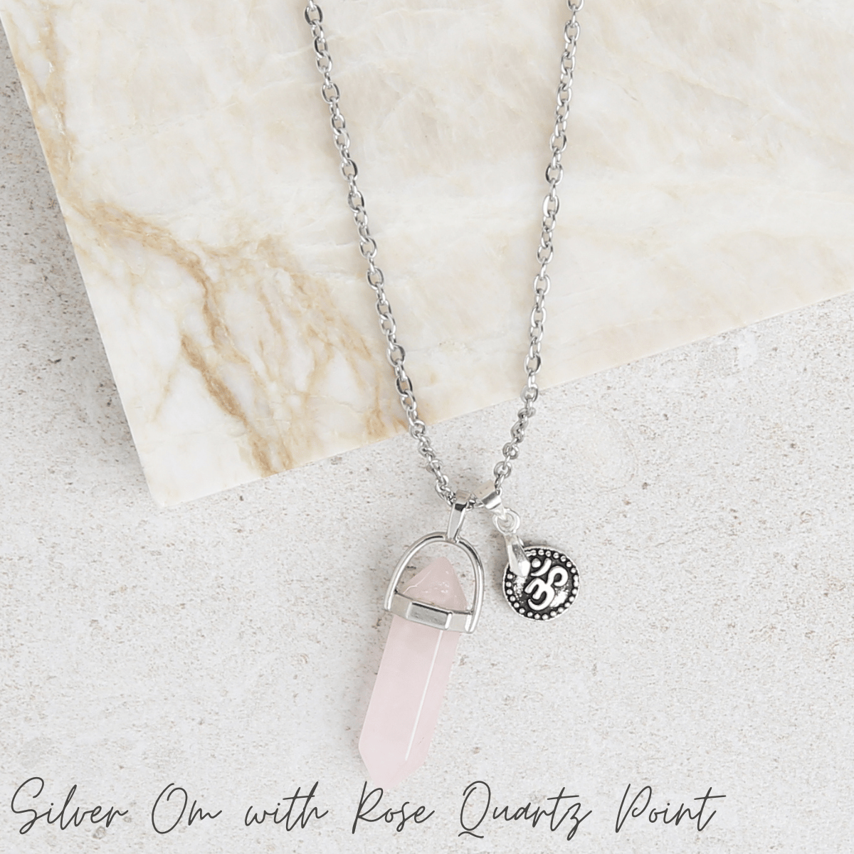 - Design options: Tree of Life, Hamsa, Om, or Om with Rose Quartz point