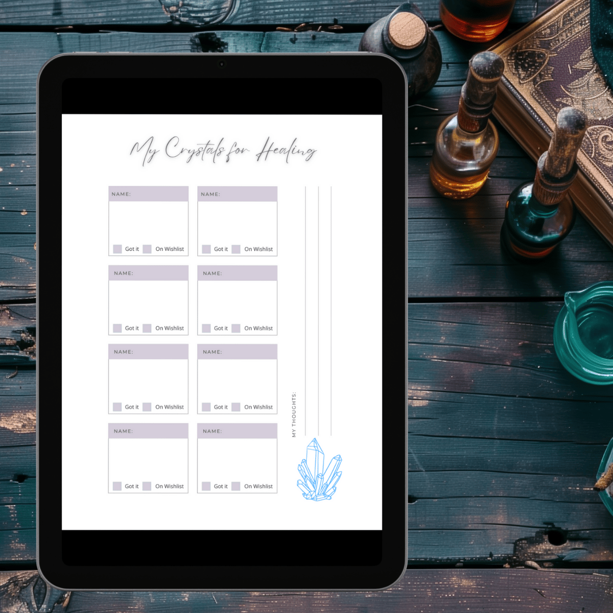 A thoughtfully designed 42-page printable journal created to support reflection, learning, and personal exploration through crystals and symbolic practices. This journal offers a gentle, approachable way to engage with crystals as visual tools for mindfulness, creativity, and intention-setting, without pressure or expectation.