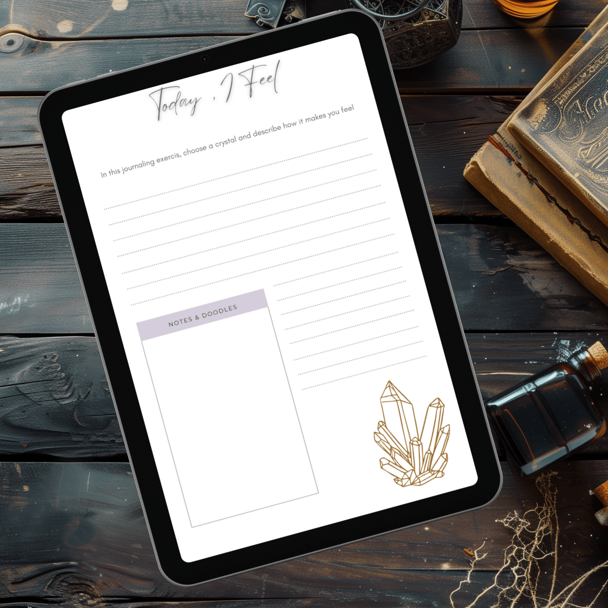 The pages are designed to be used at your own pace, whether you’re curious about crystals, enjoy journaling prompts, or simply want a calm, creative space for reflection.
