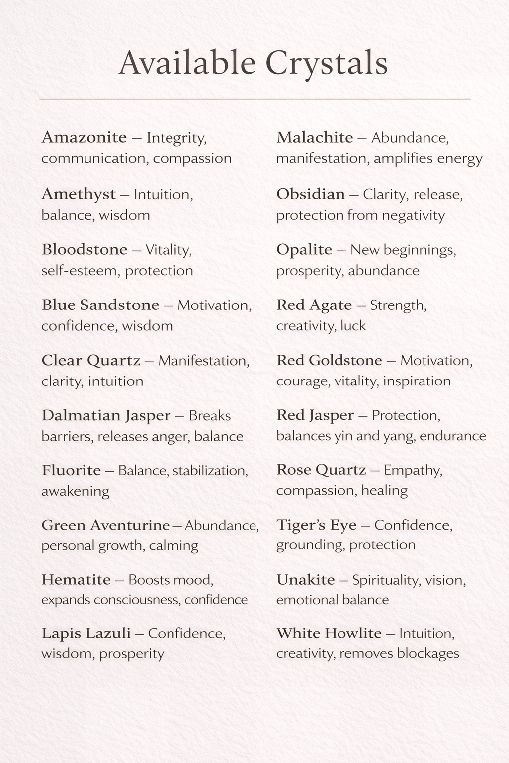 Rose Quartz, Clear Quartz ($19.99)